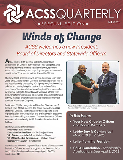 The ACSS Quarterly is mailed to all active ACSS members. If you are an active member and did not receive your copy in the mail, please update your mailing address.